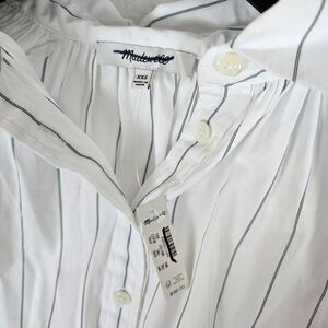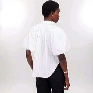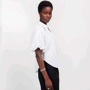 Madewell Shirred Bubble-Sleeve Button Up Shirt Women XXS Stripped White Cotton