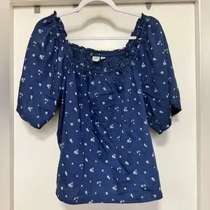Gap Factory Oversized Squareneck Puff Sleeve Top | blue with white flowers - M