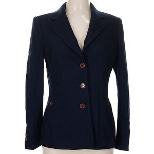 Escada Size EU 38 / US 8 Wool blazer Navy Blue Brown Buttons jacket