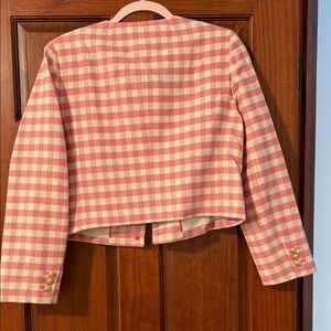 J. Crew Pink and Cream Plaid Blazer with Gold Buttons