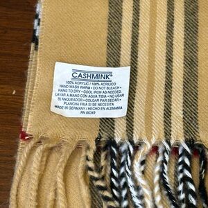 Add a classic touch to your winter wardrobe with this authentic vintage 1990s-2000s V. FRAAS Cashmink Tan Burberry Tartan Plaid Scarf! Featuring the iconic Heritage Tan Plaid in a tan, black, and red check pattern, this piece offers the softness of cashmere in a durable, easy-care material. Made in Germany of 100% Cashmink Acrylic Patented fiber that's 20% finer than natural cashmere. This beautiful scarf with fringe is super soft and it provides the best of both worlds-- warmth and trendy style! Only one, make it yours today!💕