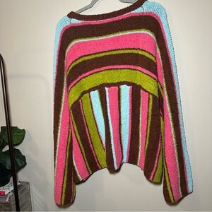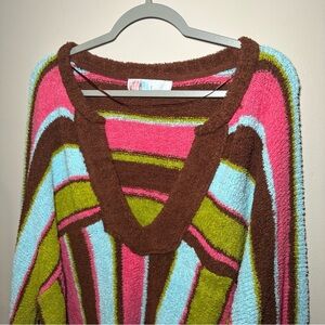 Free People FP Beach Thora Sweater Colorful Striped V-Neck Sweater Size Large