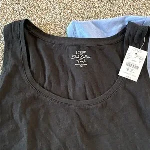 Chic J. Crew tops in black and blue. Ideal for layering or casual wear. 2 tank tops and 1 tshirt. All size medium and NWT.