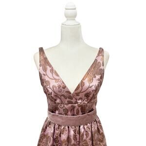 monique lhuillier dress, jacquard cocktail dress, velvet accent dress, mauve midi dress, belted party dress, formal event outfit, wedding guest dress, holiday occasion wear, luxury designer dress, elegant evening look, timeless silhouette, C6