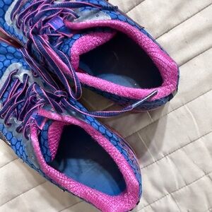 Dynamic Mizuno shoes in blue and pink. Ideal for running and casual outings. Experience comfort and style.