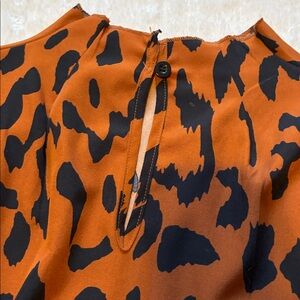 Stylish leopard print blouse. Bold brown and black design. Perfect for any occasion. Size L in SHEIN brand. Worn once. Great to dress up or down.key hole button in back