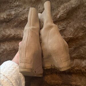 Women's Sorel Wedge Beige Lace-Up Boots Size 8.5