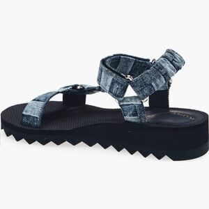 Step out in style with these Kurt Geiger blue denim sandals. Perfect for casual outings, these sandals offer both comfort and fashion.