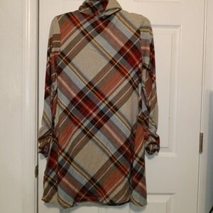 R&K Plaid Dress W/Scarf(PTP 33" L 36")
