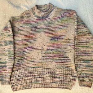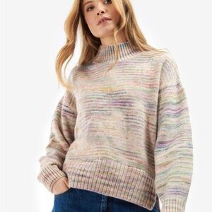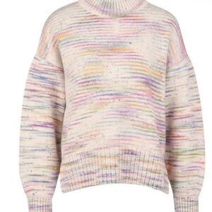 Chic and comfortable crew neck sweater featuring space dye design. Wool blend and warm- perfect for those cool fall or cold winter days. Features soft pastel stripes. Ideal for casual wear.