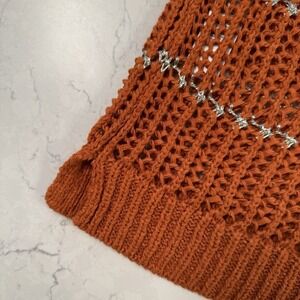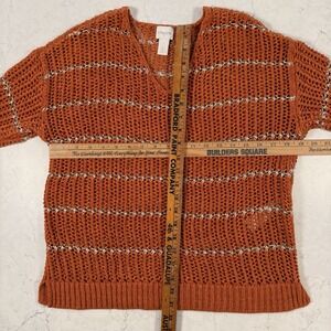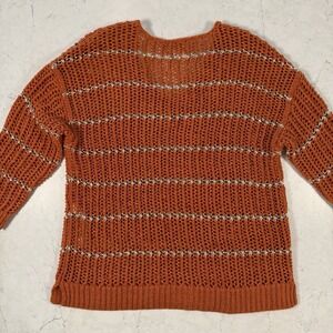 Chicos Women burnt orange silver striped open knit sweater size 0 pullover Small