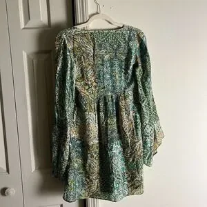 Anthropologie Floreat Amelia Green Paisley Bell Long Sleeve Mini Dress Size 0