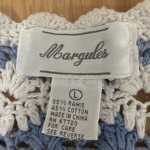 Margules Vintage 90s Blue White Striped Crochet Short sleeve Cardigan L Large