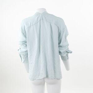 Textured tonal stripes quietly animate this easy blouse, done with a V-neck and cut in a drapey silhouette.