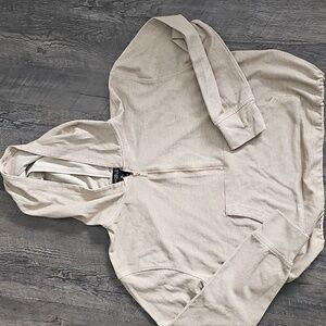 Rachel Zoe lightweight hoodie, worn once. Perfect. Looks brand new. Stylish tan sweater with a zip-up front. Perfect for layering.