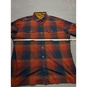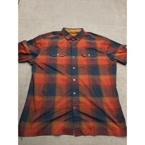 Kuhl Men's XL Plaid Short Sleeve Button Up Shirt Orange Blue Hiking Outdoors