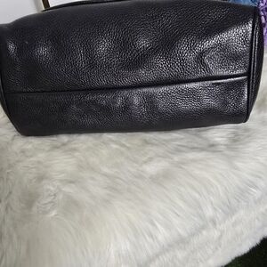 minor signs of wear, has inner zip, back zip and side zip. a stain of nail polish in interior. exterior is clean, no cracks or rubbing.