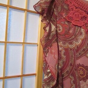 Apt 9 Paisley Peplum Lined Crochet Ruffle Blouse
