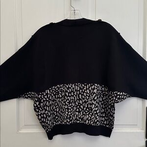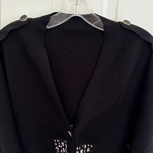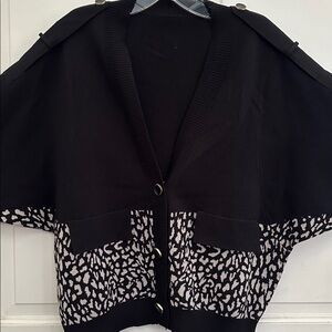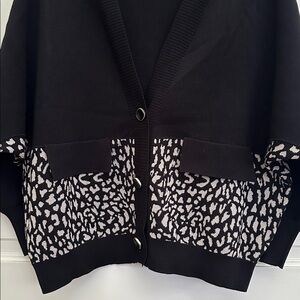 Chic Black and White Cheetah Leopard Patterned Button Front Sweater Cardigan M
