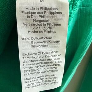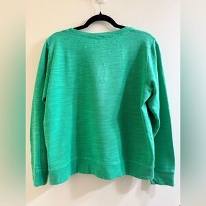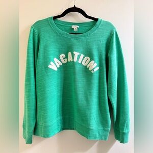 Vibrant green sweatshirt pullover with bold textured puffy ‘Vacation!' print. Perfect for casual wear.