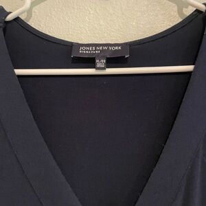 Navy Jones New York Signature Jersey Knit Dress. V neck with Empire waistline. Super comfortable but classy at the same time. Closet staple. Midi Length