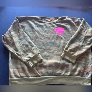 AVIATOR NATION Camouflage crewneck Sweatshirt with bright pink heart🩷NWOT🩷