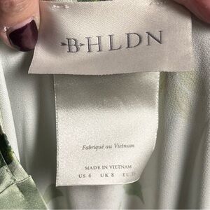 BHLDN Leila Floral V-Neck Flutter Sleeve Satin A Line Dress, Meadow Mist — 4