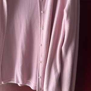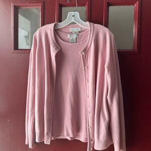 Chic and cozy cardigan and matching tank underneath Perfect for layering. Soft pink hue adds elegance.