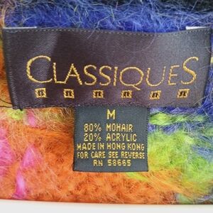 Embrace bold 80s style with this colorful abstract turtleneck mohair sweater. Perfect for adding a comfy retro touch to your wardrobe.