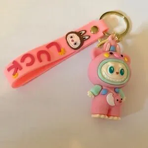 Labubu cute pink and green character keychain “luck” NWOT!
