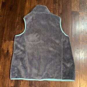Orvis Wmn L Gray Sherpa Fleece Full Zip Vest Teal Red Trim Aztec Tapestry Rodeo