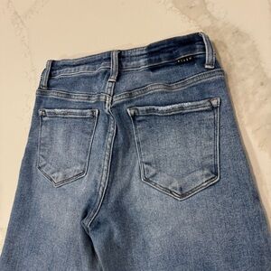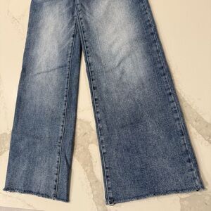 Risen HighRise Wide Leg Denim Jeans Women’s Size 3/26 Vintage Blue Wash Raw Hem