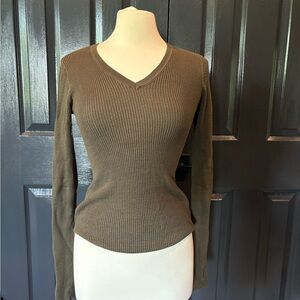 Stylish olive green V-neck sweater. Perfect for any occasion. In perfect condition with no damages, very open to offers!