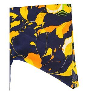 Vintage Floral Long Kaftan Dress Handmade Navy Yellow Green Abstract Print