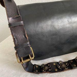Patricia Nash Black Leather Crossbody Bag with Embellished Strap
