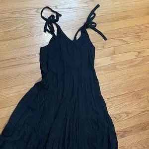 Free People Black Tiered Maxi Tie Shoulder Dress size M