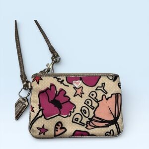 Coach Poppy floral wristlet. This design is part of the vintage and highly collectible "Poppy" line from the late 2000s, known for its playful and graphic prints