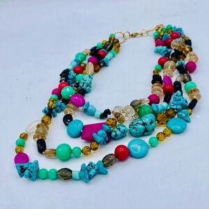 Stella And Dot Chunky Multi Strand Turquoise Multi Color Beaded Necklace Retired