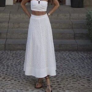 ZARA EMBROIDERED CAPE SKIRT OYSTER WHITE SIZE L 2788/972/251