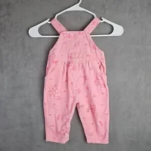 Vintage Oshkosh Bgosh Pink Corduroy Floral Overalls Size 12 Month