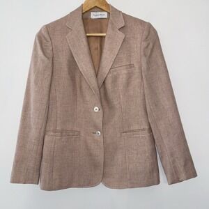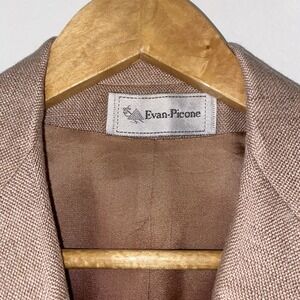 VTG Evan Picone Blazer Women's Size 8 Tan Linen Blend ILGWU USA Tailored Jacket