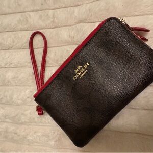 Coach Wristlet in Black with Red Trim