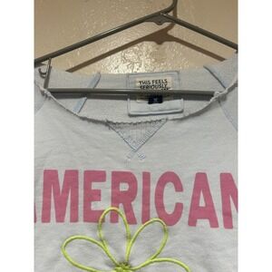 American Eagle Outfitters Light Blue Graphic Sweatshirt Pullover Women's M