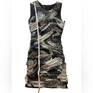 BCBGMaxAzria Roxanne Asymmetrical Ruched Mesh Cocktail Dress Size Medium