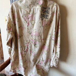 Amazing floral with option to wear inside out! Longish , full, mix buttons and snaps, hand fade and distress. Stellar design .Adison workshirt with patches