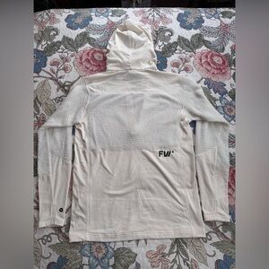 HARD TO FIND Size XL FW Mainifest Alpha Fleece Hoodie. MDL - POLARTEC Alpha direct. A high-performance mid-layer that is highly breathable, quick-drying and thermo-regulating, meaning you won‘t need to add and subtract layers as you stop and start intense exercise. 100% recycled polyester. FEATURES: High-performance mid-layer built from moisture-wicking, odor-resistant fabrics. Hood, shoulders and lower body are built from Polartec Power Grid Light. Upper sleeves, body and collar are built from Polartec Alpha Direct. Tall collar with adjustable hood. Wide opening YKK Vislon 1/2 Zip provides additional temperature control. Thumb loops. Color appears to be a cream color but all specs online call it Snow White.
