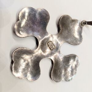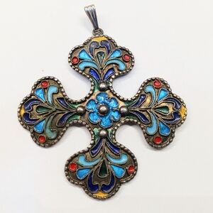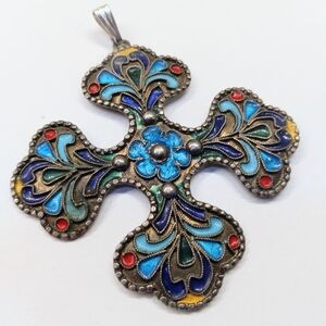 Art Deco 100% Pure Silver Enameled Cross Pendant Marked 1000