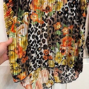 Kaktus Vibrant Floral Sheer and Leopard Long Sleeve Top. Size M.