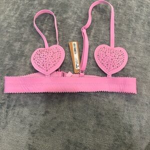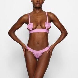 This is the SKIMS Jelly Sheer Intimates Bralette in that perfect Barbie-pink shade, with rhinestone heart details and barely-there straps. Super cute. Super not for me. My loss, your moment.