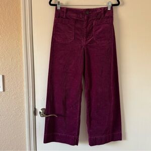 Anthropologie Maeve Colette Corduroy Cropped Wide Leg Pants Womens Sz 28 Violet